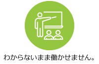 自信を持って働いてほしい。そのために、「わからない」を抱えたまま現場に入っていただくことはありません。事前にしっかりと研修を受けていただいて、現場デビューをしていただきます。