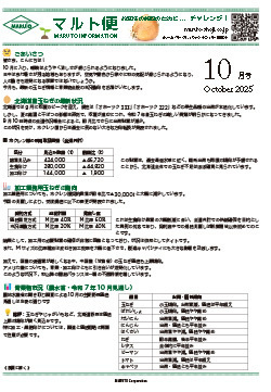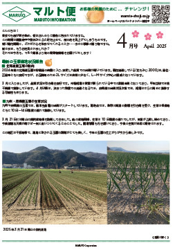 マルト便 2026年1月号 謹賀新年 『玉ねぎザックリ野菜ポトフ』 2025年12月号 国産玉ねぎの状況と年末年始の見通し 輸入玉ねぎの動き 『玉ねぎステーキホワイトソースがけ』 2025年11月号 北海道産玉葱の生育・生産動向 青果物市況 『玉ねぎとさつまいものサラダ』 2025年10月号 北海道産玉ねぎの最新状況 加工業務用玉葱の動向 『玉ねぎザックリ鶏つくね丼』 2025年9月号 最新の玉葱産地状況報告 最新の青果物業界ニュース 『和風玉ねぎカプレーゼ』 2025年8月号 北海道産玉葱の生育・生産動向 産地訪問報告 『玉葱スパニッシュオムレツ』 2025年7月号 最新の玉葱産地状況報告 府県産玉葱の動向 『玉葱の梅しそマリネ』 2025年6月号 最新の玉葱産地状況報告 注目野菜:にんじんの動向 『玉葱ビシソワーズ』 2025年5月号 北海道産玉葱の動向 府県産玉葱の状況 『新玉葱丸ごとグラタン』 2025年4月号 最新の玉葱産地状況報告 最新の青果物業界ニュース 『新玉葱と菜の花のサラダ ハニーマスタードソース合え』 2025年3月号 府県産玉葱の状況 野菜全般の価格動向 『玉葱ステーキレモンバターソースかけ』 2025年2月号 北海道産玉葱の動向 2025年1月 野菜高騰の動き 『玉葱のカレー天津飯』 2025年1月号 謹賀新年 玉葱を使ったおすすめ料理 『玉葱春雨メンマ合え』 2024年度 2023年度 2022年度 2021年度 2020年度 2019年度 2018年度 2017年度 2016年度 2015年度